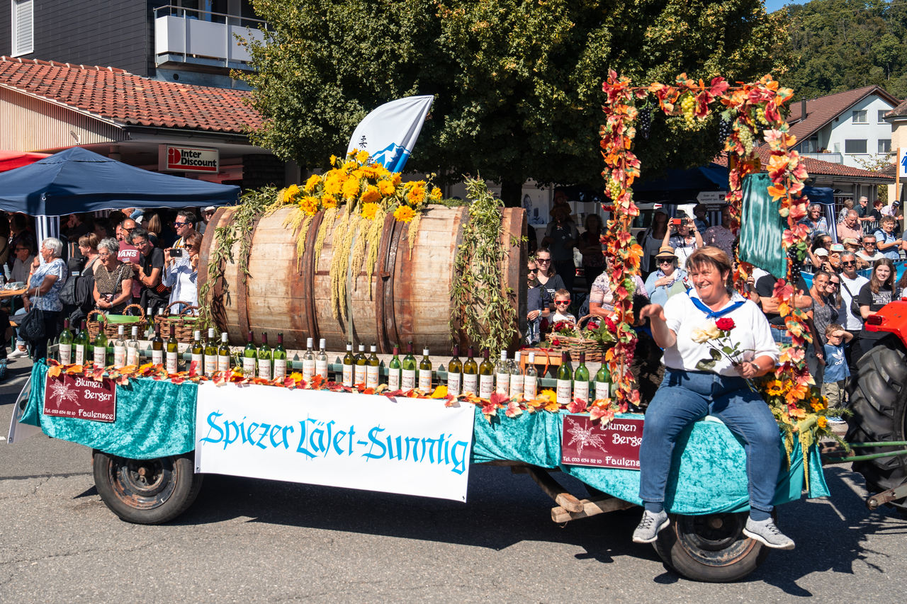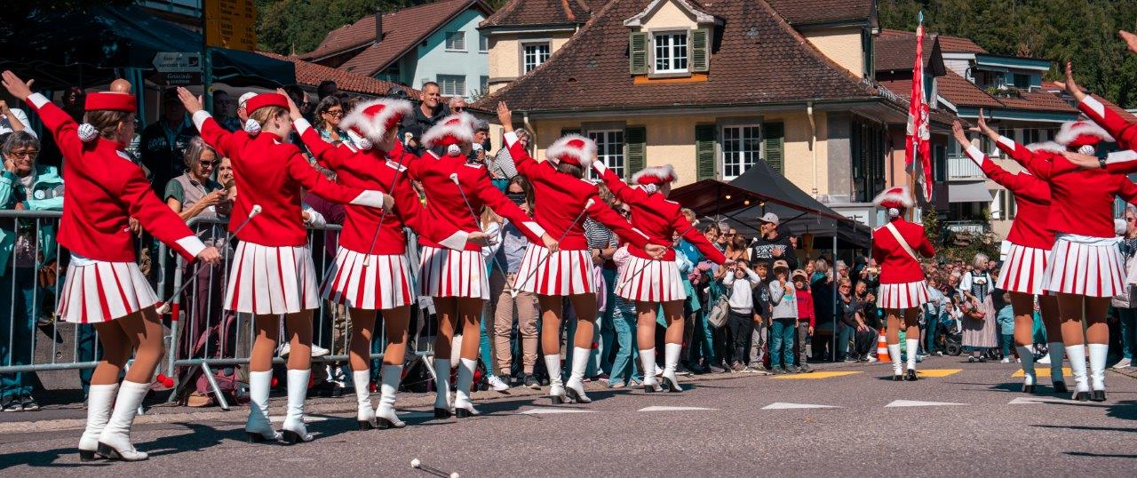 Der grosse Festumzug dauert ungefähr eine Stunde und wird von Platzspeakern entlang der Route kommentiert.